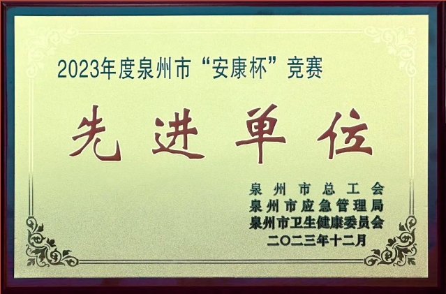 福建鴻官公司榮獲泉州市“安康杯”競賽先進單位
