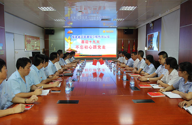 2017年10月18日上午,福建省鴻官通信工程有限公司晉江總部三樓黨支部大會議室座無虛席,晉江市黨代表、公司總經(jīng)理翁國文、公司黨支部書記翁長官同總部全體黨員及入黨積極分子一起歡聚一堂,集中收看十九大開幕式盛況,各駐地項目部黨小組也分別組織收看。
