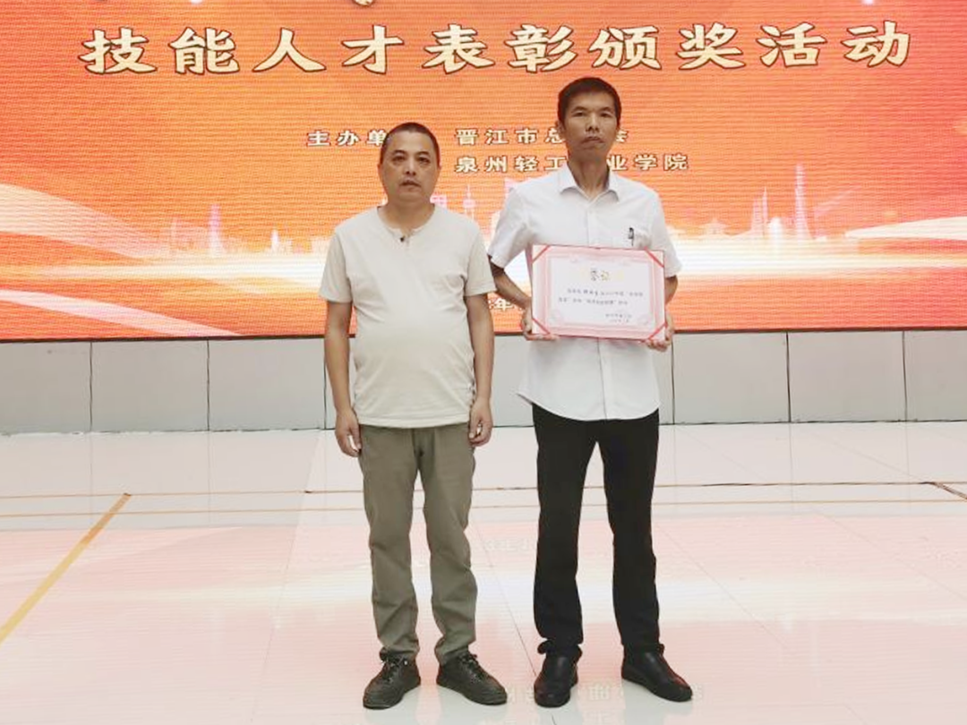 晉江市總工會于2023年11月3日在泉州輕工學(xué)院隆重舉行了職工技能人才表彰大會,會上表彰了一批在技能上做出了貢獻的行業(yè)工匠。我司辦公室主任、工會副主席胡必生同志榮獲“泉州市好師傅”稱號,電信發(fā)展部裝維主管楊仲澤同志榮獲“晉江市好師傅”稱號。