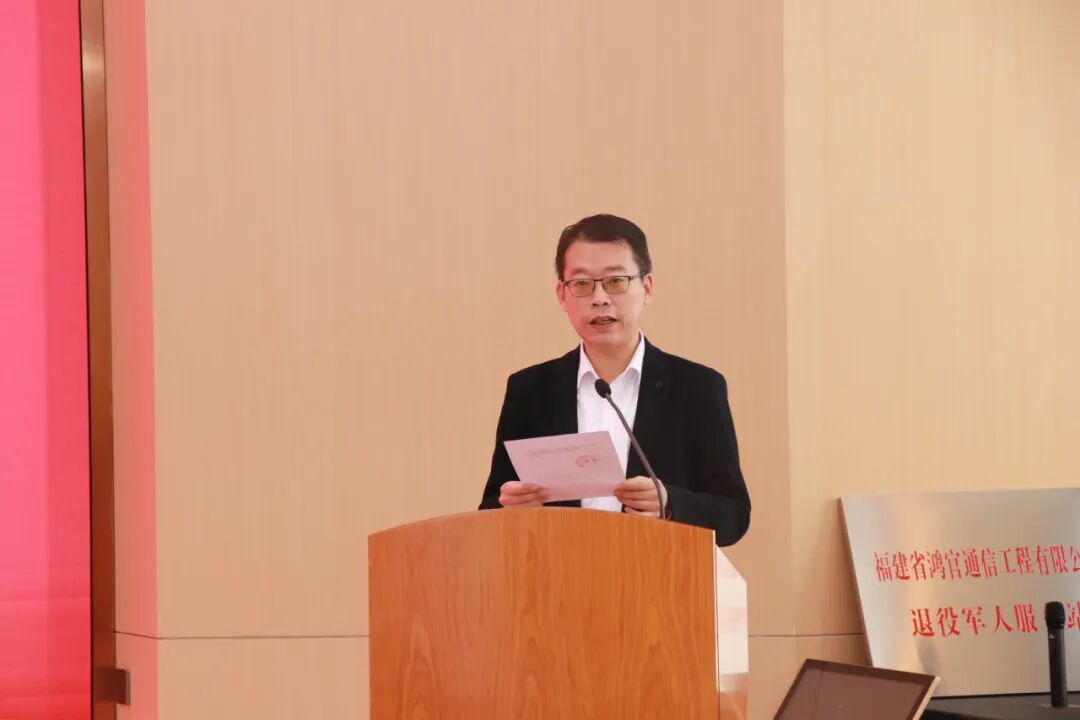 陳達(dá)森副局長宣讀《關(guān)于同意設(shè)立福建省鴻官通信工程有限公司退役軍人服務(wù)站的批復(fù)》,隨后,陳金尚局長為福建省鴻官通信工程有限公司授予“福建省鴻官通信工程有限公司退役軍人服務(wù)站”牌匾。