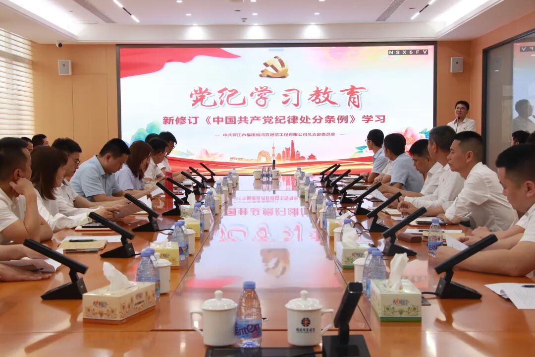 2024年4月27日,福建省鴻官通信工程有限公司黨總支在晉江總部黨群活動(dòng)服務(wù)中心召開黨紀(jì)學(xué)習(xí)教育會(huì),貫徹學(xué)習(xí)中央、省委、泉州市委、晉江市委、羅山街道黨工委關(guān)于黨紀(jì)學(xué)習(xí)工作會(huì)的會(huì)議精神和學(xué)習(xí)新修訂的《中國(guó)共產(chǎn)黨紀(jì)律處分條例》。